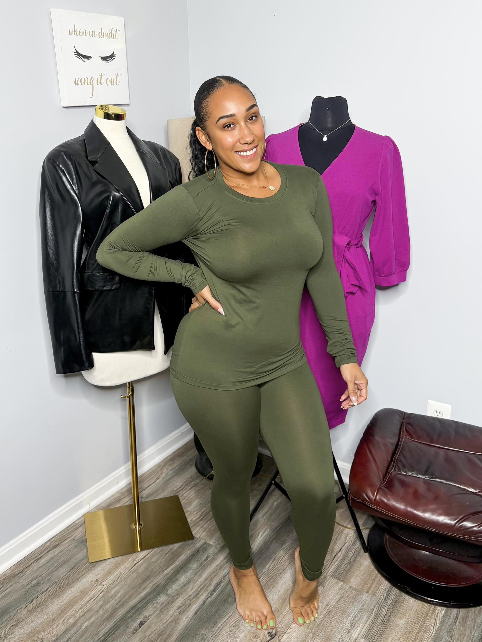 Experience effortless style with the Olive Butter Soft Two Piece Set, crafted for ultimate comfort and a flattering fit. Made from buttersoft fabric, this set feels gentle against the skin, making it perfect for all-day wear. Designed true to size, it ensures a reliable fit, combining ease with polished simplicity. Ideal for layering or wearing alone, this set blends comfort with understated elegance.
